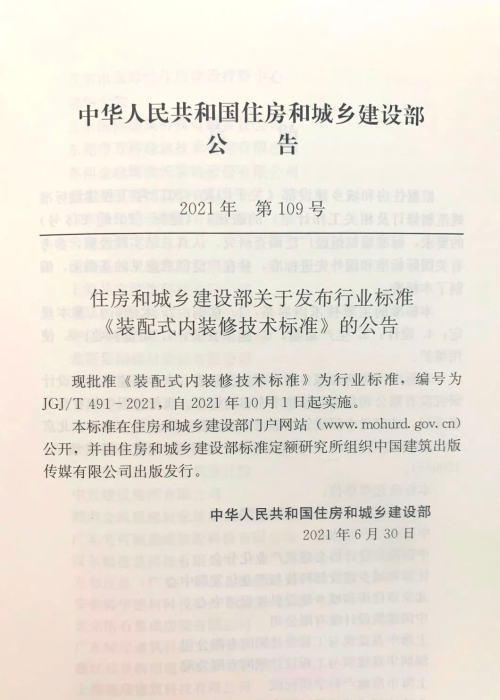 近期,由标准院会同行业各大优秀企事业单位共同制定编写的行业标准《装配式内装修技术标准》也正式发布。