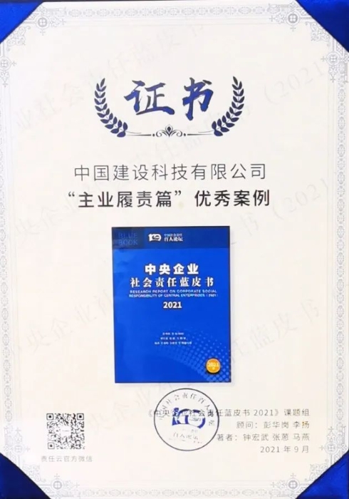 近日,由国务院国资委主办的中央企业社会责任报告集中发布活动(2021)在京召开,发布了《中央企业社会责任蓝皮书》。这是国务院国资委、中国社科院、责任云研究院连续第5年发布《中央企业社会责任蓝皮书》。此次发布的蓝皮书共收录了63家央企的优秀履责案例,中国建设科技集团《与国家战略同频共振 为北京冬奥助力蓄能》入选 “主业履责篇”优秀案例。