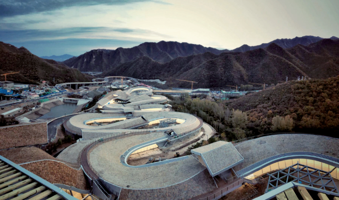 集团所属中国建筑设计研究院有限公司牵头设计的北京延庆赛区国家雪车雪橇中心拥有全球第一条360°回旋赛道。项目设计团队结合赛道形状、自然地形和人工地形、遮阳屋顶、遮阳设施等,研发出“地形气候保护系统”,有效保护赛道冰面,降低气候因素对赛道的影响,最大限度降低能耗。