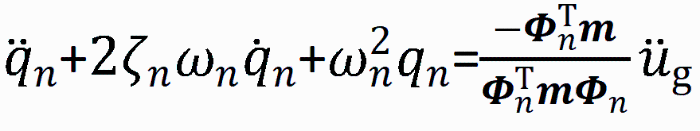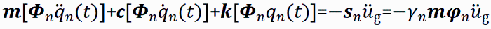 可求出第n振型对位移的贡献。至此我们就由单自由度的位移结果求出了各振型的位移结果,然后在任一时刻将各振型的结果简单叠加就可以得到每个质点的位移,再进行一阶与二阶求导就可以求各质点的速度与加速度。