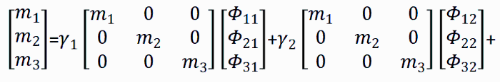 因为质点上的惯性力、阻尼力与回复力都和质量与位移的函数成正比,对质点上的惯性力进行分解时,需要将这个向量向以质量矩阵与振型向量之积构成的广义基上分解