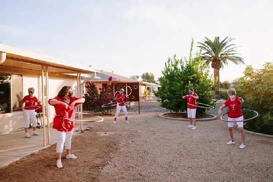 1960年,美国兴起开发建设的太阳城(Sun City)是居住康养型老年住区早期实践中最典型的代表(图3)。住区建设选址在环境优美的郊区,建筑多以低层住宅为主,成组团式布置,便于管理和后期运营与扩建。经过六十余年的发展,太阳城住区系列也在不断改革创新。例如:老年人可选择购买或租赁房屋及居住的产品,其中“家庭式”住房单元可缓解亲缘割裂的问题;并增加住区内医疗照护设施,以满足高龄医疗需求等(图4)。