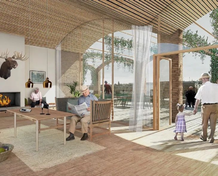 欧洲模式中,丹麦、荷兰等国家的老年住区着力发展代际互助与混合居住住区建设模式。在住区中,由青年大学生等志愿者陪伴、照护老人,通过互助实现了两代人的陪伴与共同成长。位于丹麦哥本哈根的The Future Sølund世代住区,致力于建造多世代、多龄化居住的混合式住区,项目包括老年住房、青年公寓和老年照护公寓,以及日间护理中心、商店和咖啡馆等公共服务设施,中央庭院被称为“世代广场”,在公共空间里,老年人、年轻人和孩子都能够自如地沟通交流。项目以社会福祉、幸福安全和功能空间为建设标准,既提升了老年人生活质量,又解决了养老问题(图5)。