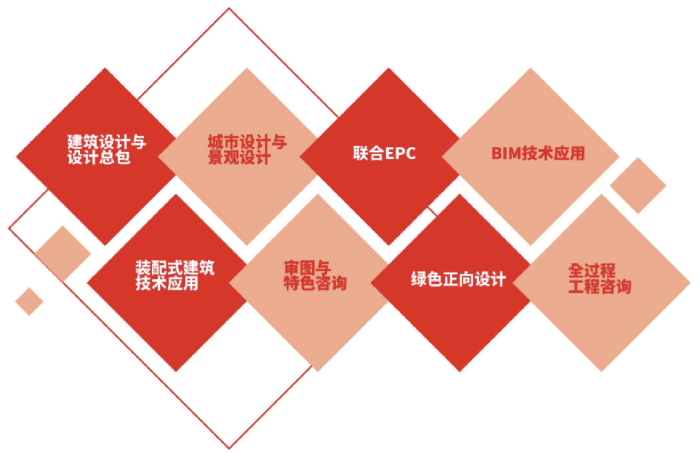 华森公司坚持以建筑设计为核心,主营业务包括建筑工程设计、工程与技术咨询、规划设计、景观设计、设计总承包等,打造超高层、办公、商业综合体、酒店文旅、住宅社区、医疗健康、文化教育、产业园区8大优势板块,形成了建筑设计与设计总包、城市设计与景观设计、联合EPC、BIM技术应用、装配式建筑技术应用、审图与特色咨询、绿色正向设计和全过程工程咨询8项服务模式。