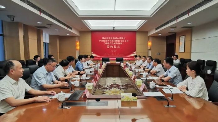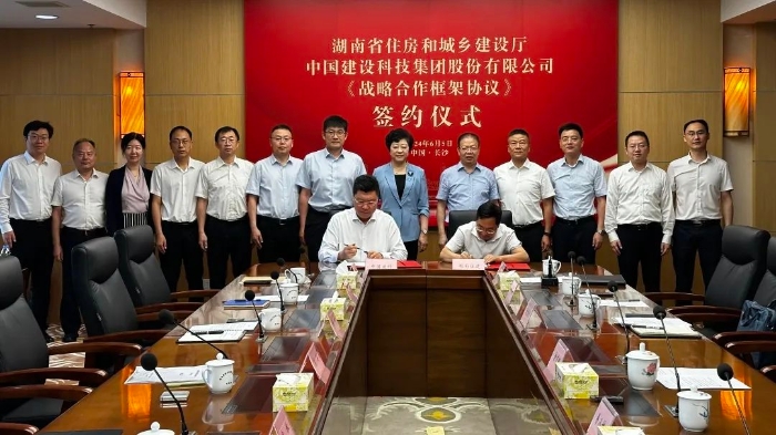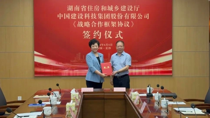 6月5日,中国建科与湖南省住房和城乡建设厅在长沙签署战略合作框架协议。中国建科党委副书记、总裁孙英和湖南省住房和城乡建设厅党组书记、厅长唐道明出席签约仪式并进行座谈交流。